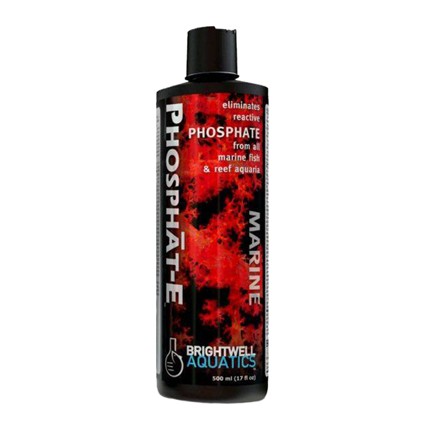 Phosphate, while required in minuscule amounts by living organisms for proper functioning, can indirectly negatively impact the overall appearance of an aquarium system if it is allowed to exist at a concentration measurable by most aquarium test kits (e.g. >0.05 ppm); in order for this impact to occur, other undesirable substances must be present in varying concentrations, however, these substances are rarely limiting in the typical marine aquarium. Because of this, elevated phosphate concentrations, whether sporadic or chronic, should be combated. Phosphāt-E enables a quick solution to elevated phosphate concentrations by binding the reactive (“free”) form of the molecule and making it unavailable for biological uptake. The resultant inert phosphate compound (a particulate) may then be permanently removed from the system via mechanical filtration and/or protein skimming. This method of treatment may be used as needed and/or on a continual basis to maintain an immeasurable phosphate concentration in a marine aquarium.