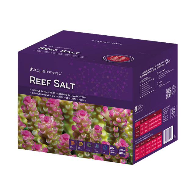 Aquaforest Reef Salt is a synthetic marine salt designed specifically for aquacultured corals. The formula contains essential micro and macro nutrients necessary for proper coral growth and pigmentation, along with added amino acids and Vitamin C to support coral health and immunity.