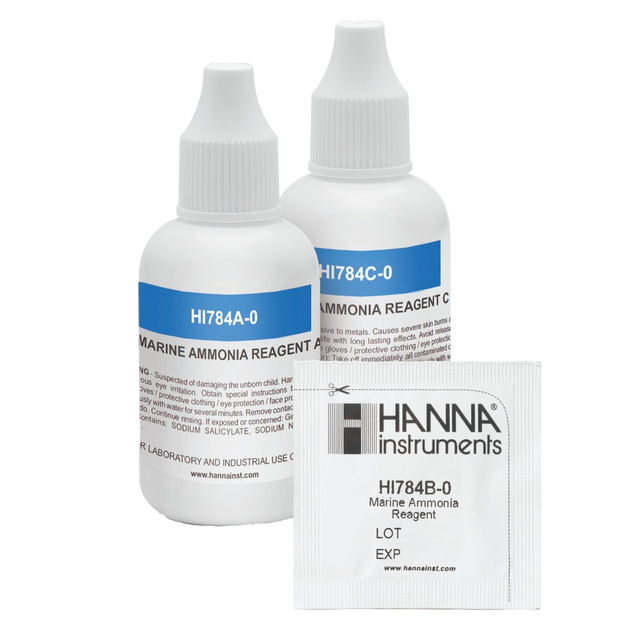 HI784-25 Marine Ammonia Checker HC (Handheld Colorimeter) Reagents are high-quality reagents for use with the HI784 Marine Ammonia (ppm) Checker HC. Reagents are clearly marked with the lot number and expiration date on each packet for traceability.