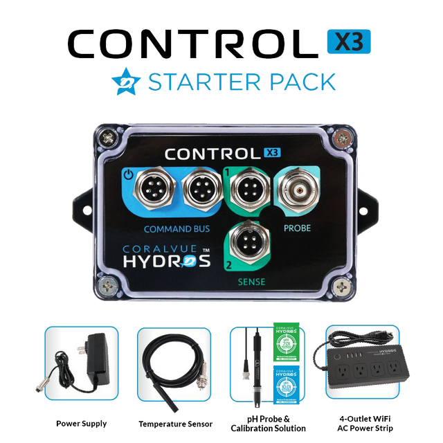 This starter kit includes all essential equipment needed to monitor and control a healthy aquarium including a Control X3 device, HYDROS App, temperature sensor, pH probe, and more. Set up is quick and easy, making this ideal for both beginner and advanced hobbyists. All HYDROS products are engineered, assembled, and supported in the USA.