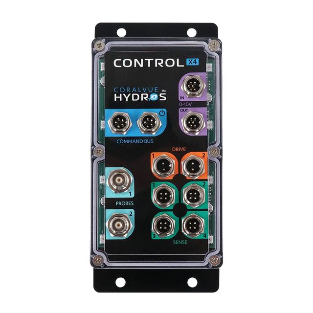 HYDROS Control X4 is a powerful and robust aquarium controller capable of performing all essential functions needed to maintain a healthy aquarium without the need for extra expensive modules. Set up is quick and easy, making this ideal for both beginner and advanced hobbyists. Just one Control X4 can monitor temperature, pH, ORP, and water level, to name a few, and control pumps, timers, level sensors, and much more thanks to its technologically advanced design. It can be used as a standalone controller for saltwater aquariums, freshwater tanks, pond applications, or it can be added to other HYDROS Controls to build a more extensive system. The Control X4 operates on a HYDROS Safety Net and is rated IP65 to keep your equipment and aquatic life alive and thriving. All HYDROS products are engineered, assembled, and supported in the USA.