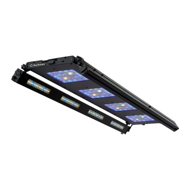 - App Mode: Full 100% output, dual-channel spectrum adjustment, and detailed scheduling through the ReefBreeders app (Bluetooth where available).