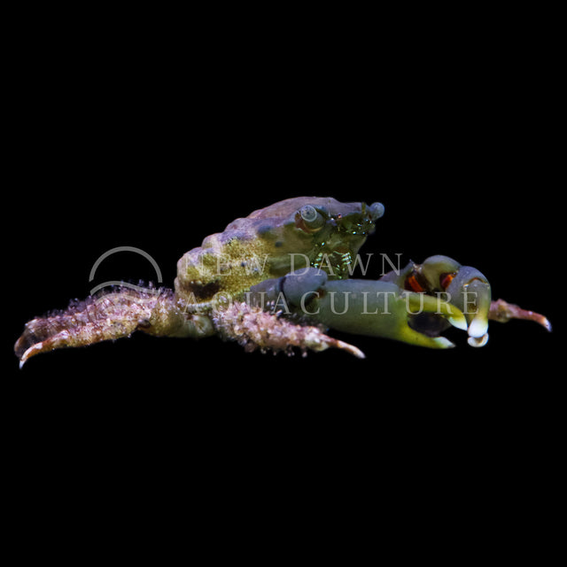 Native to the reefs of the Caribbean, the Emerald Crab is nocturnal and hides in caves and amongst rubble during the day. In the home aquarium, this member of the Majidae family requires a well-established aquarium with plenty of rockwork and hiding places. Once familiar with its surroundings, the Emerald Crab will venture out of hiding during the day to forage on algae.
