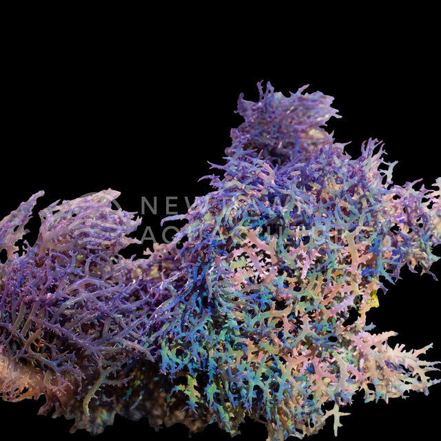 This macroalgae thrives under moderate to strong lighting with stable reef parameters, and it can be placed in both display aquariums and refugiums. Its vibrant hues intensify under blue and actinic lighting, creating a stunning, otherworldly effect.