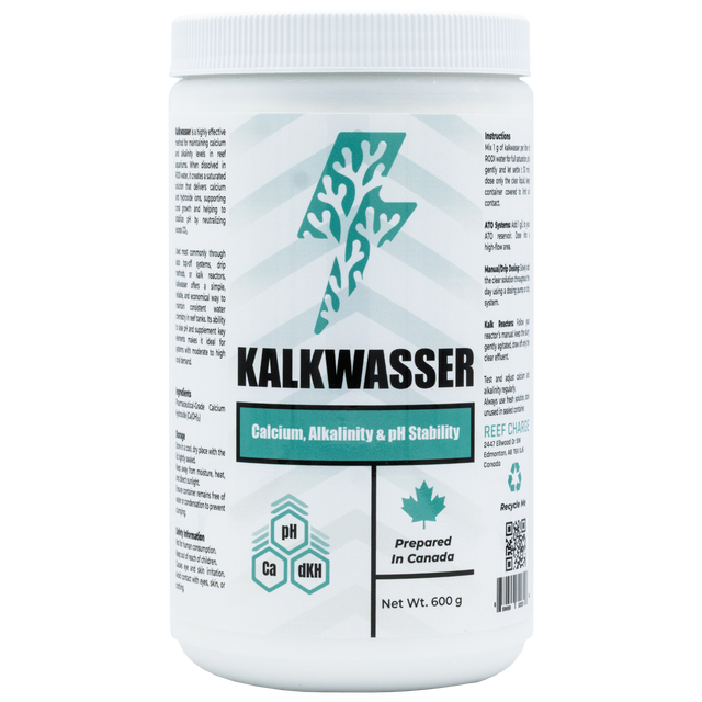 Kalkwasser is a highly effective method for maintaining calcium and alkalinity levels in reef aquariums. When dissolved in RODI water, it creates a saturated solution that delivers calcium and hydroxide ions, supporting coral growth and helping to stabilize pH by neutralizing excess CO₂.