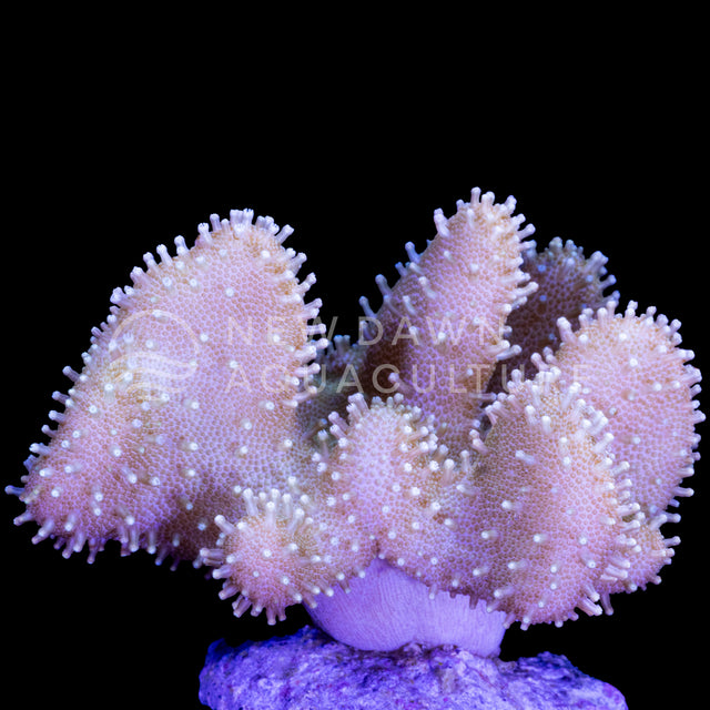 Our recommendation is to keep this coral in medium to high light and flow. While these corals will survive and grow in low light and flow conditions, that isn’t ideal for them. We observe brighter colouration and longer polyp extension the more light and flow we provide them. In the wild these corals tend to live in very turbulent and shallow reefs, so it makes sense that they would be happiest in those conditions.