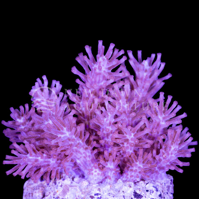 Our recommendation is to keep this coral in medium to high light and flow. While these corals will survive and grow in low light and flow conditions, that isn’t ideal for them. We observe brighter colouration and longer polyp extension the more light and flow we provide them. In the wild these corals tend to be in very turbulent and shallow reefs so it makes sense that they would be happiest in these conditions.
