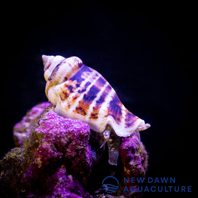 Praised for their hardiness, the Fighting Conch requires open, deep sand beds in which it can forage for food. Though multiple Fighting Conches should be housed in larger systems, single specimens are suited for any size reef aquarium. Keep in mind that the Fighting Conch has a voracious appetite; as such, supplemental feeding is required in smaller systems and recommended in even the largest aquarium setups.